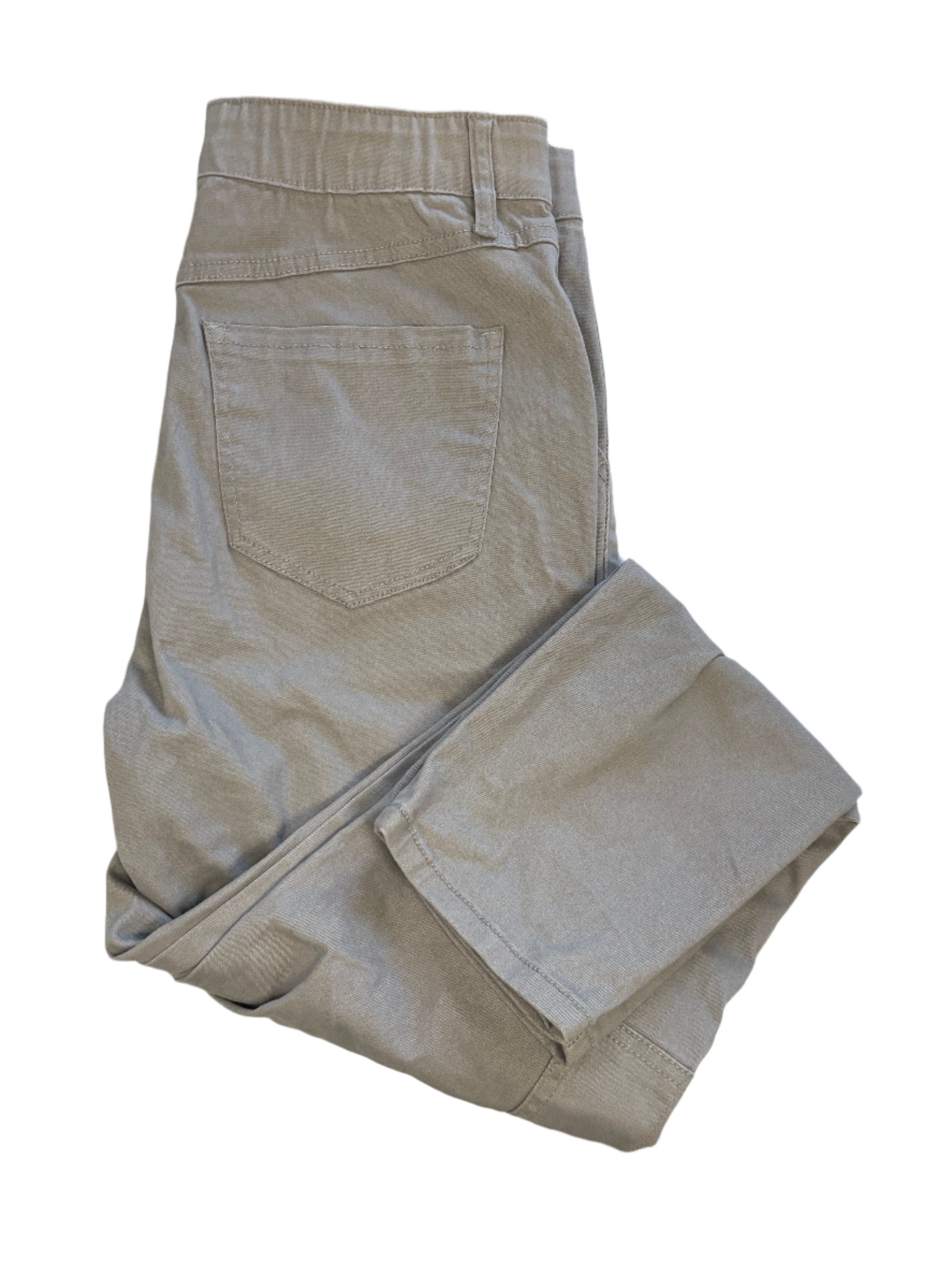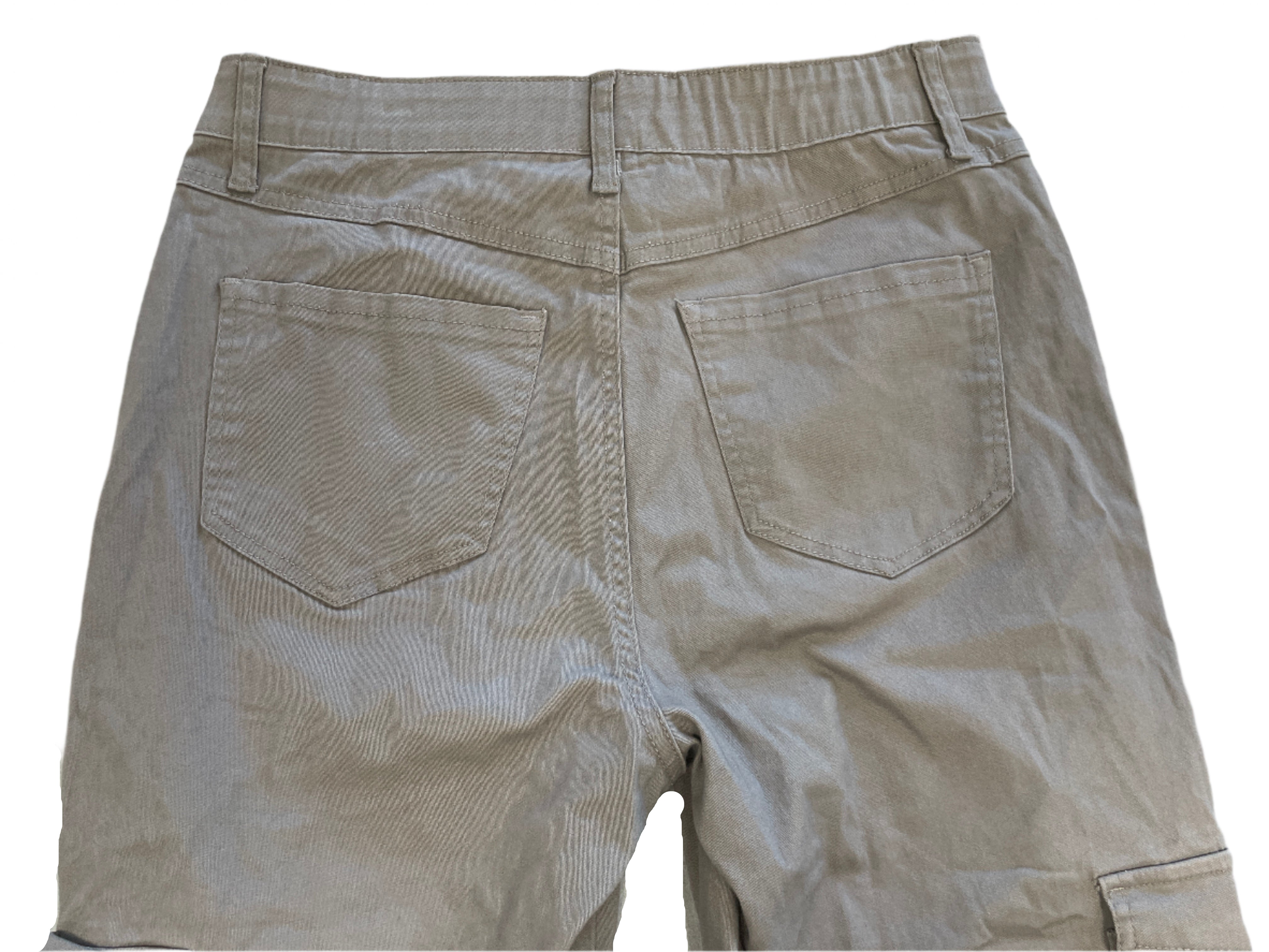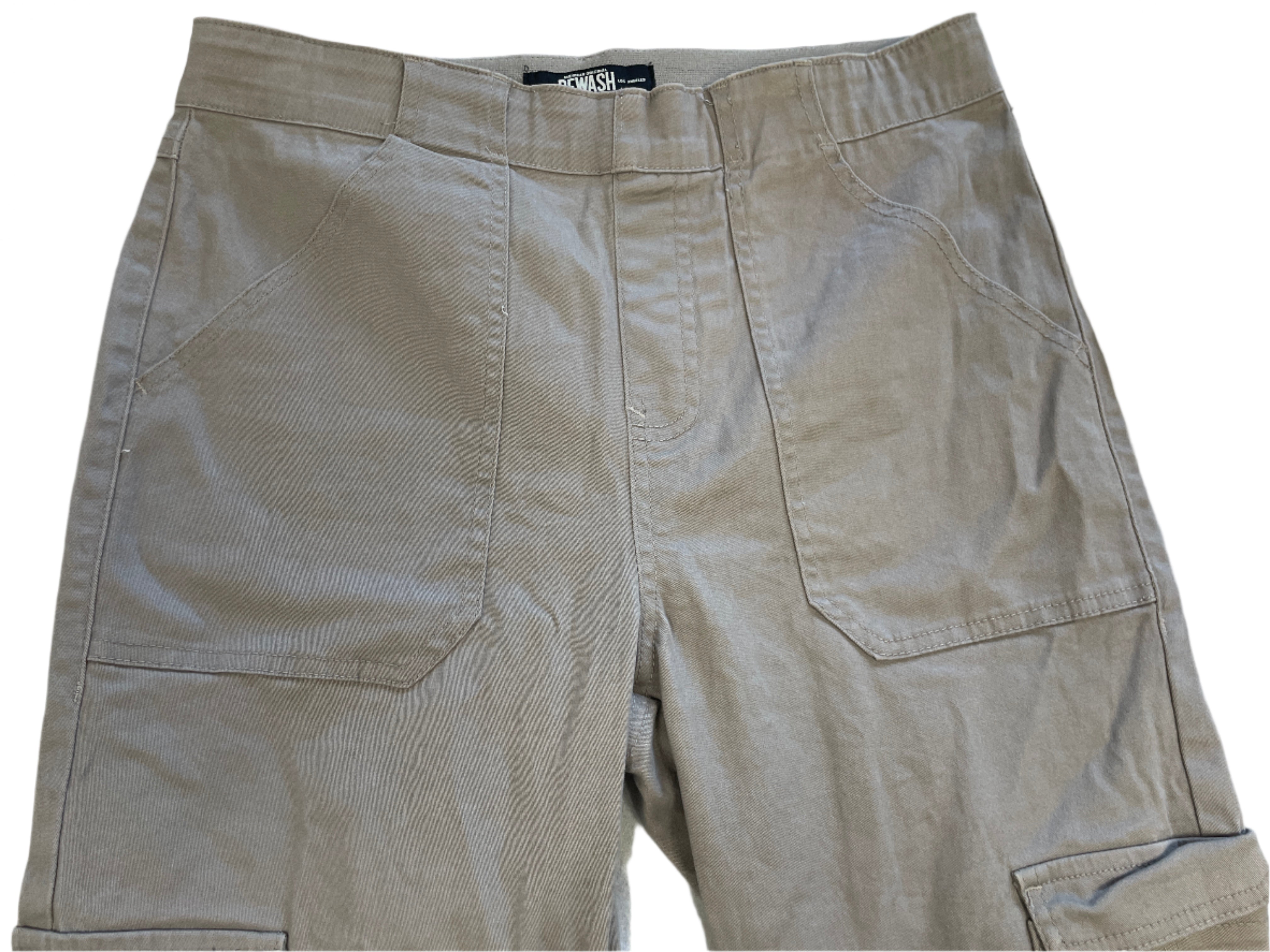 These cargo-style pants by Rewash combine comfort and utility with a flattering, everyday look. Crafted in a soft taupe stretch fabric, they feature pull-on ease, a wide elastic waistband, and plenty of pockets to keep essentials close. Though tagged size Large, they measure closer to a Medium fit.