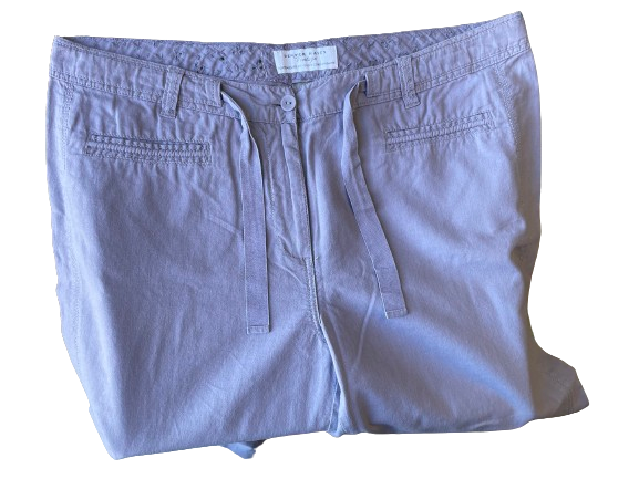 Experience the ultimate comfort and style with these thrifted Denver Hayes Vintage Lilac Capris. Made from a luxurious linen and cotton blend, these capris are perfect for all-day wear. Step out in confidence and let your inner fashionista shine with these stylish and breathable capris. 😍
