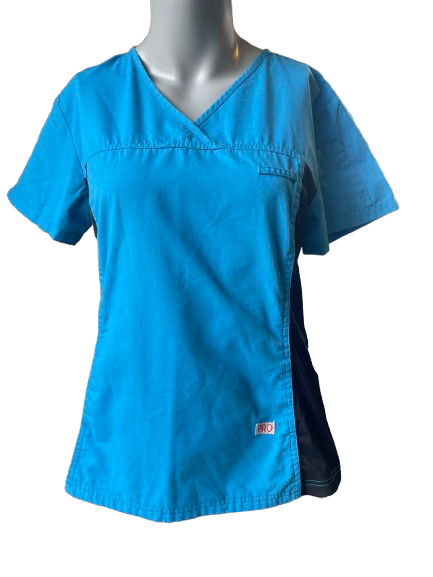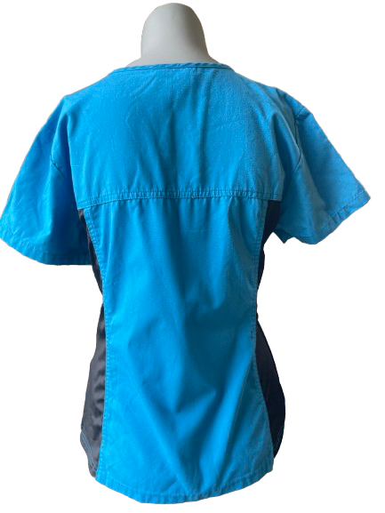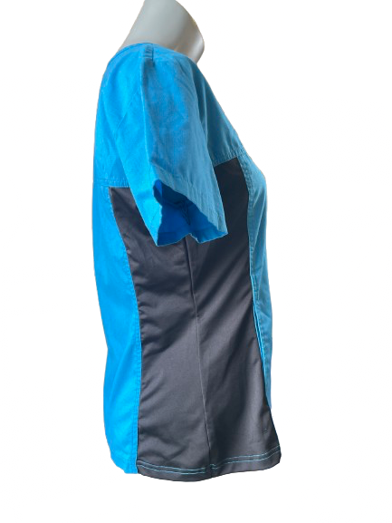 Experience ultimate comfort and flexibility with this Silky Soft Scrubs Blue Black Scrubs Top! The stretchy side panels allow for easy movement and a perfect fit, so you can focus on what matters most - providing the best care for your patients. π