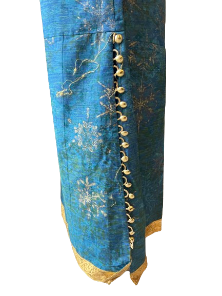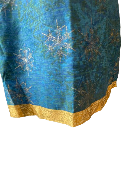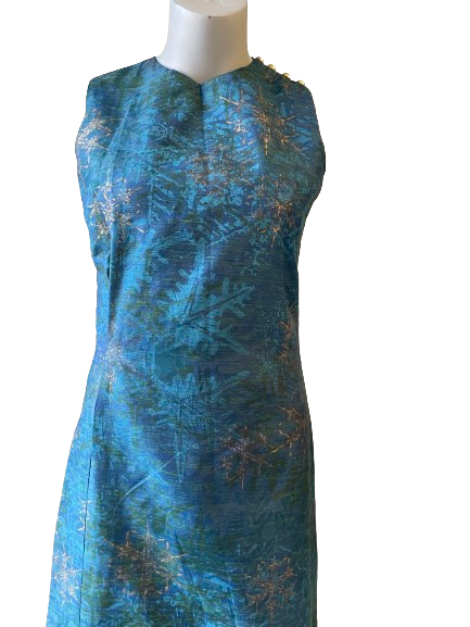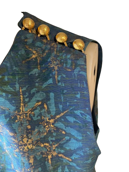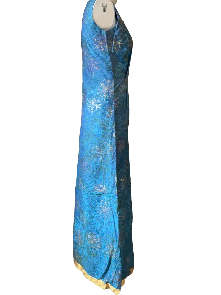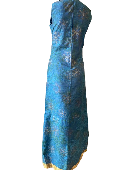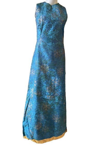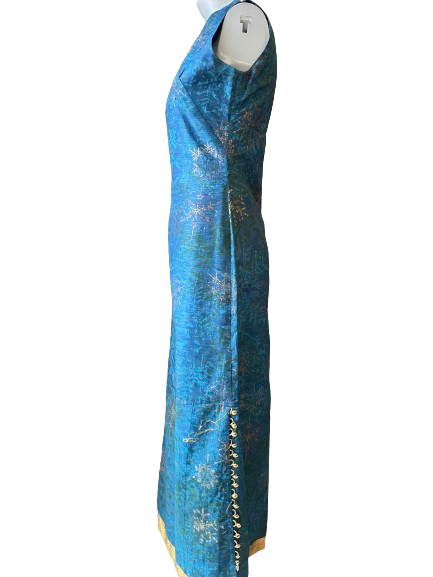 Indulge in luxury with the Almedahl of Sweden Long Blue Sleeveless Dress. This stunning piece boasts beautiful blue and green colours, elegantly trimmed with gold. Unique and found thrifting, it's a true testament to your exquisite taste. Elevate your wardrobe with this sophisticated find. 🌟