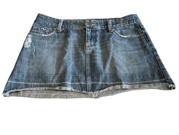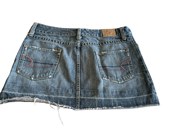 This stylish American Eagle Raw Hem Distressed Denim Skirt is an on-trend addition to any wardrobe. Crafted from premium quality denim fabric, it features raw distress detailing, frayed edges and a contemporary mini skirt silhouette to ensure all-day comfort and timeless appeal. Make a statement with this fashion-forward denim mini skirt.