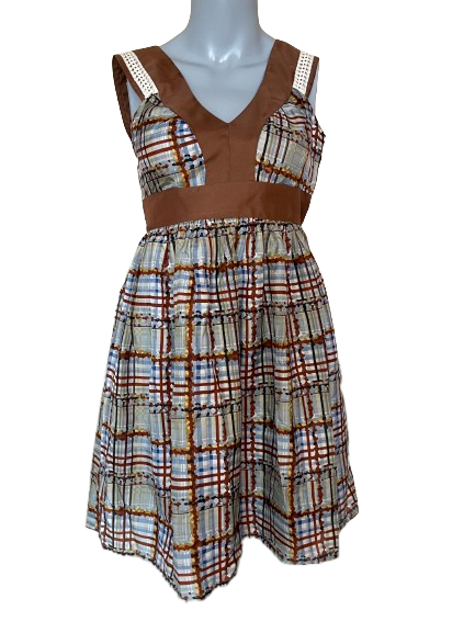 This Burlapp Brown Silk Dress from Anthropologie features a sophisticated plaid print in luxurious 100% silk material perfect for any special occasion. Its timeless design will ensure you turn heads, without sacrificing comfort.