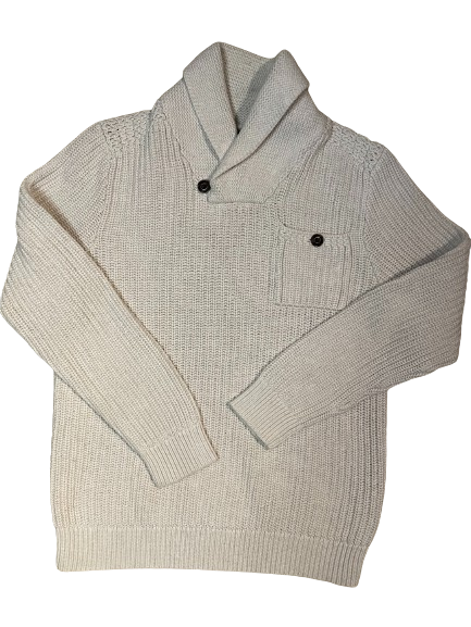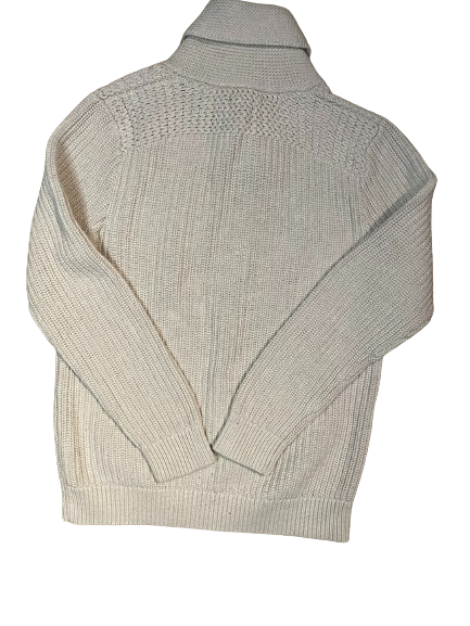 Indulge in luxury with our Banana Republic Cream Mock Neck Sweater. Crafted with quality in mind, this men's sweater is a great thrifted find that exudes sophistication and exclusivity. A must-have addition to your wardrobe, it's the perfect blend of style and comfort.