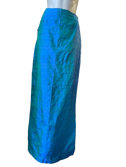 This Blue Green Shimmering Maxi Skirt is a show-stopping piece that will instantly elevate any outfit! The shimmering colour adds a touch of glamour and will make you stand out in any crowd. Get ready to turn heads and feel confident in this stunning maxi skirt. 💙💚