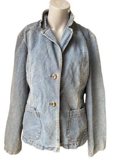 Upgrade your wardrobe with this Cotton Ginny Denim Blazer! 🎉 This vintage blazer will add a touch of retro charm to any outfit. Made from soft, durable cotton, it's the perfect blend of style and comfort. Elevate your look with this timeless piece! 😍