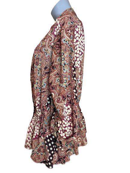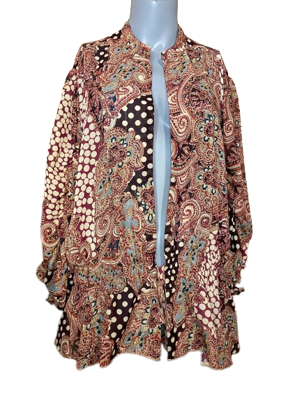 • Design Loft Brown/Burgundy/Cream Open Blouse