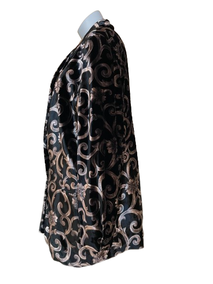 This Escada Margaretha Ley Blazer is a luxurious statement piece crafted from soft velvet. Featuring a classic cut with sophisticated details, this blazer is perfect for adding a touch of glamour and sophistication to any outfit. Crafted by the iconic premium brand, it exudes timeless elegance and exclusivity.