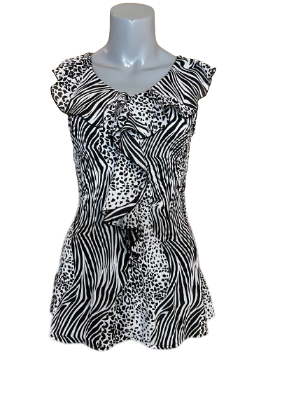 Take your wardrobe for a wild ride with the Fred David Zebra Print Sleeveless Blouse! Show off your daring sense of style with this daring 🐆 print blouse - be the leader of the pack and stand out from the crowd. Perfect for those who like to 🤸 and push the boundaries of fashion. 🔥🔥
