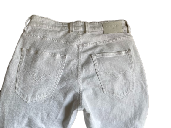 These GUESS White Slim Tapered Jeans are crafted from a stretch denim blend so you can move with ease and comfort. The tapered fit ensures a flattering look and a striking silhouette.