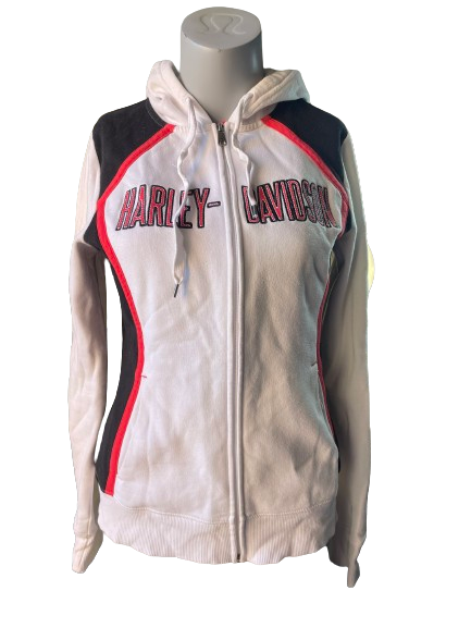 🔥 Take the road in style with the Harley Davidson White Zip-Up Hoodie! This comfortable hoodie is the perfect addition to your daring wardrobe. Zip it up and hit the open road, ready for any adventure that comes your way! 🛣️