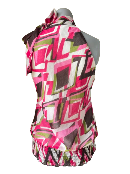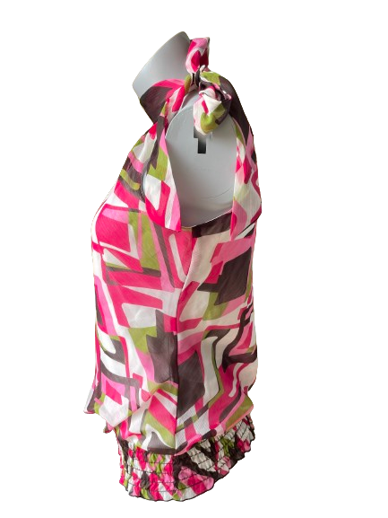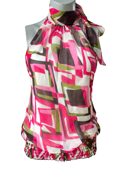 Looking for a statement piece? Look no further! This Heart Soul Pink Geometric Halter Blouse features a stunning pink, brown, and cream geometric pattern that will turn heads. The halter neckline with flowing ties adds a touch of elegance. Trust us, pictures don't do this blouse justice!