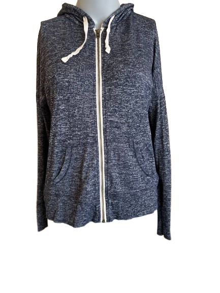 Looking for a comfortable addition to your wardrobe? Look no further than this Hollister Navy Blue Lightweight Zip-Up Hoodie! It's made from a lightweight, breathable fabric and has a zip-up front for convenience. You'll be chillin' in style and comfort wherever your day takes you!