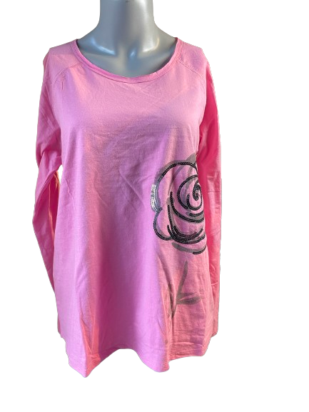 Bloom into style with this Hue Pink Sequin Flower Long Sleeve Top! Featuring a sequin large rose design, this top adds sparkle and whimsy to any outfit. A must-have for those looking to stand out and add a touch of fun to their wardrobe. 🌹💖