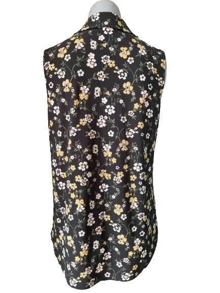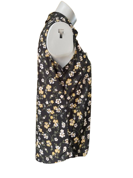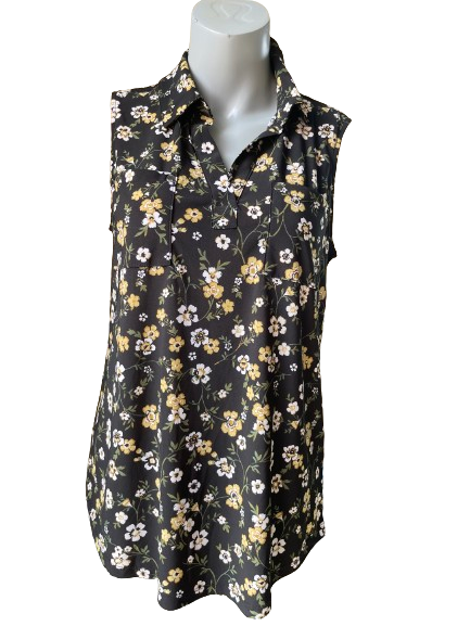 🌻 Feel confident and stylish with our Jones New York sleeveless top! Adorned with stunning yellow and white flowers on a black background, this top is both beautiful and versatile. Perfect for any occasion, it's the perfect addition to your wardrobe! 🌺