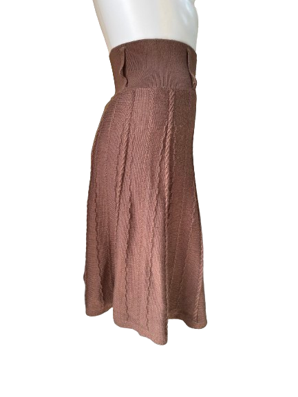 Turn heads with this Lapis Brown Knit Long Skirt! The wide waistband provides a comfortable fit while the flowing wool blend adds elegance and movement. Perfect for adding a touch of sophistication to any outfit. 😍