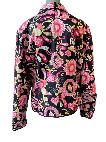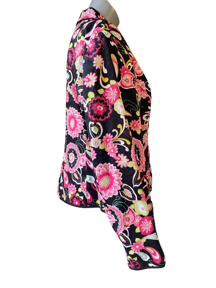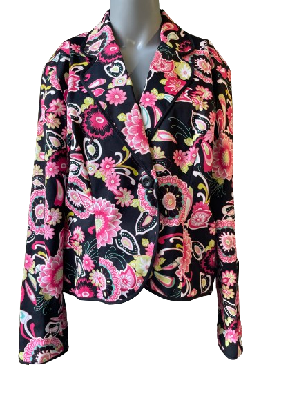 Elevate your wardrobe with the Melrose Black Floral Blazer. This vintage 1980's piece features a stunning black floral design and is in mint thrifted condition. Embrace timeless elegance and sophistication with this one-of-a-kind blazer. 🌸🖤 #LuxuryStyle #VintageChic #BlackFlorals