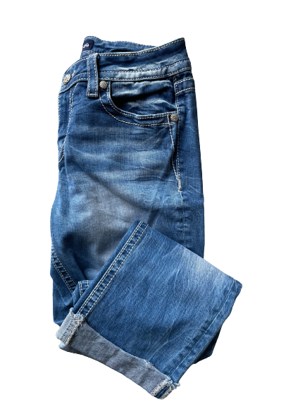Be the ❤️ of the party with these fun 'n' flirty Miss Me 🌟 mid-rise capri jeans! Swoon-worthy pockets are adorned with shimmery sequins and rhinestones for an added pop of pizzazz. Look like a million bucks without spending it!