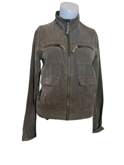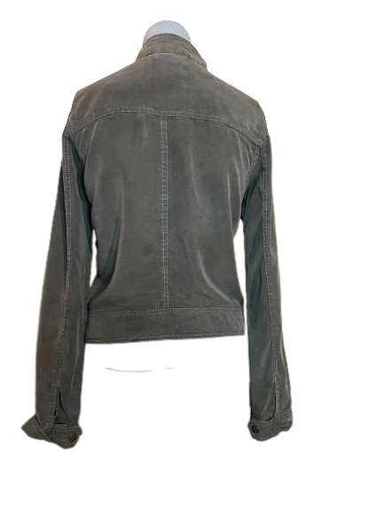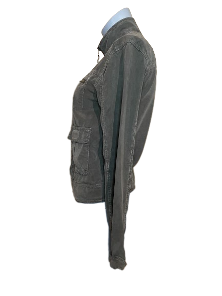 This Mossimo Supply Co Army Green Utility Jacket is perfect for outdoor adventures. With two spacious pockets, it's perfect for storing all your necessities while you explore. Enjoy a comforting and stylish look during your travels with this utilitarian jacket.