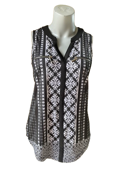 • Motion Everyday Athleisure Black White Sleeveless Blouse