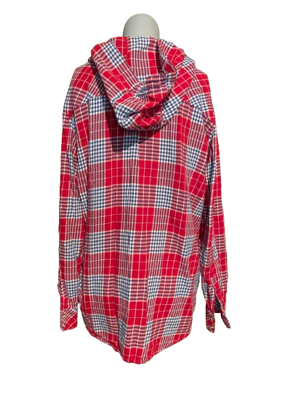 Stay stylish and cozy in our Nevada Red Blue Plaid Hooded Shirt! With a classic blue and red plaid pattern, this shirt adds a pop of colour to any outfit. The attached hood adds extra warmth, making it perfect for chilly days. Upgrade your wardrobe with this must-have piece! 🔥