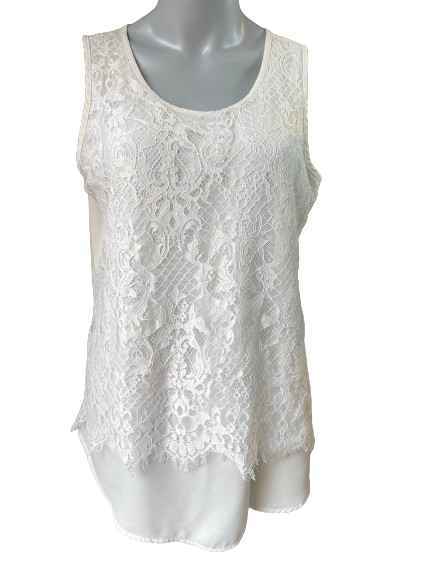 Elevate your style with this Northern Reflections White Lace Tank. Expertly crafted with a delicate lace overlay, this tank exudes sophistication and luxury. Perfect for any occasion, its intricate details and elegant design will make you stand out from the crowd. Embrace the beauty of lace and indulge in the art of fashion. ✨🌸
