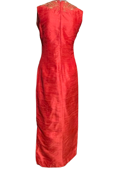 Indulge in the beauty of this Peach Sleeveless Beaded Long Dress. This original piece is a great thrifted find that exudes elegance and sophistication. With its intricate beading and unique sleeveless design, this dress is sure to make you stand out and feel luxurious.🍑✨