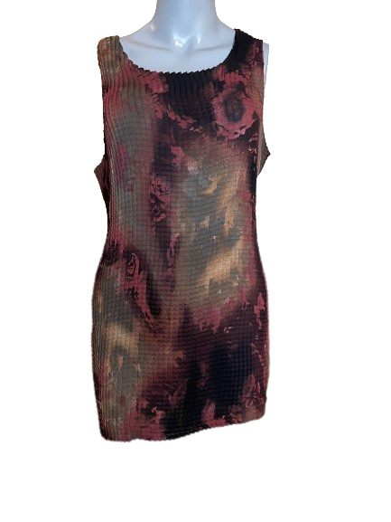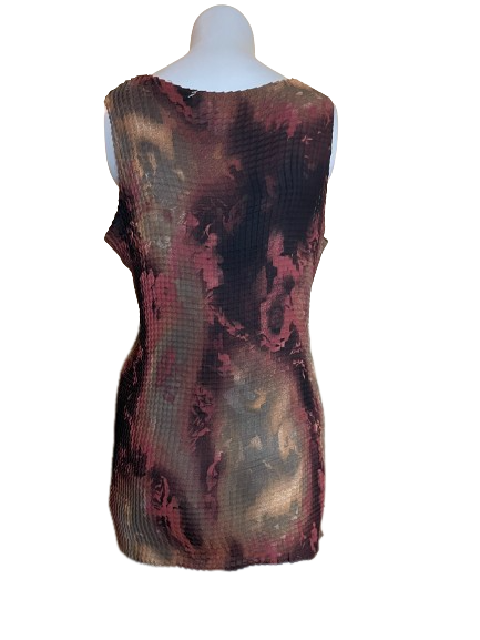 Look stylish and chic in this Reitmans Crinkle Sleeveless Top! Crafted with a durable accordion fabric, it features stunning swirls of beautiful fall colours. Add an instant touch of sophistication to any outfit - perfect for any thrifting lover! #Thrifting #Fashion #SophisticatedStyle