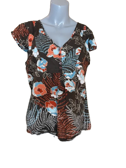 Stay on-trend with this Reitmans Tropical Cap Sleeve Top! Its bold tropical print is perfect for making a statement. Looking for a fashion-savvy way to stay cool? Get this top and you'll be 👌! #ThriftingGoals 🤑