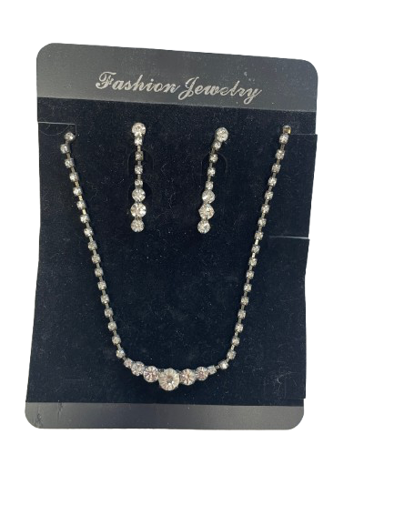 This dazzling rhinestone jewelry set includes a necklace and matching drop earrings, perfect for adding some shimmer to your evening look. In excellent condition, never worn. Lightweight and comfortable, ideal for weddings, parties, or holiday events.
