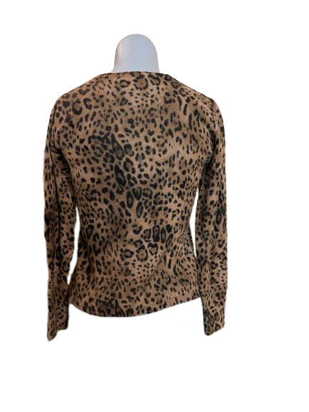 This Saks Fifth Avenue Leopard Print Cashmere Sweater➡️🐆🧶🧥 is ultra-soft and luxurious for a comfortable fit. Its 100% cashmere fabric ensures superior warmth that won't irritate the skin.