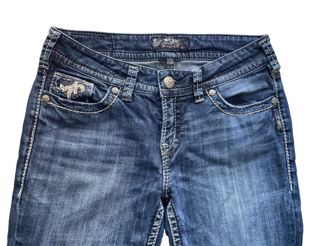 Dress to impress with these Silver Suki Slim Jeans! π Featuring eye-catching white contrast stitching, these jeans will elevate any look. Perfect for those who value both style and comfort. π
