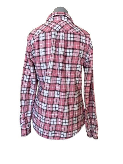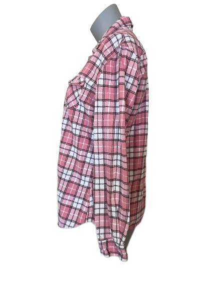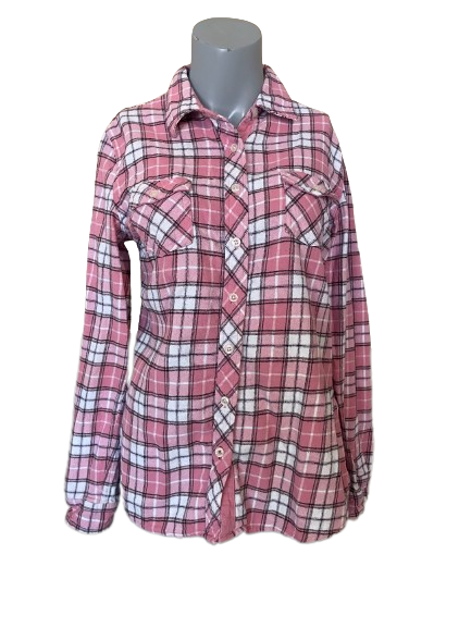 Stay warm in style with this vintage pink plaid flannel button down shirt. Crafted from soft, cozy flannel, this timeless shirt will keep you fashionable and comfortable, whatever the weather!