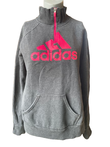 Elevate your style with the Adidas Grey Mock Neck Pullover! Showing off the iconic brand logo in playful pink, this pullover is the perfect blend of sporty and chic. Infuse your wardrobe with a touch of effortless cool and make a statement wherever you go. 💪