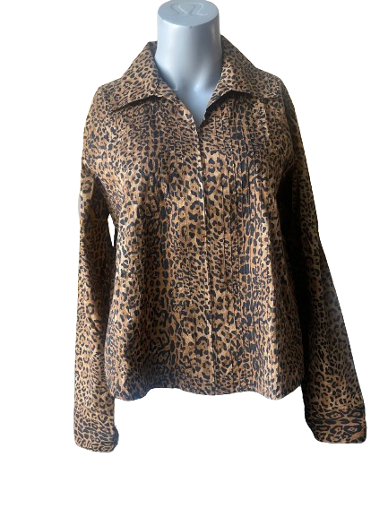 Add a touch of 🐆 to your wardrobe with this secondhand shacket style leopard print top from Coldwater Creek! This versatile piece can be worn as a shirt or jacket, making it perfect for any season. Elevate your style and unleash your wild side with this must-have top!