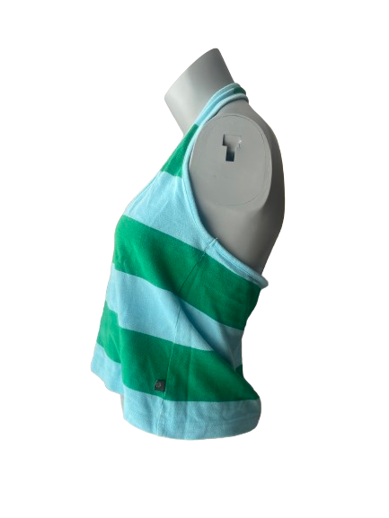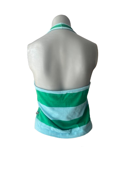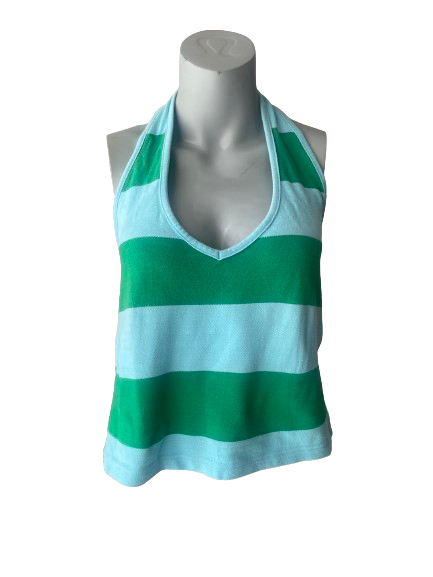 Add some summer vibes to your wardrobe with the Global Mind Green Blue Striped Halter! Perfect for a day out or a beach trip 🏖️, this top will keep you stylish and cool. Embrace the season with this playful and unique design 🌞👗