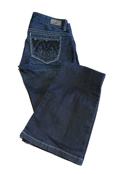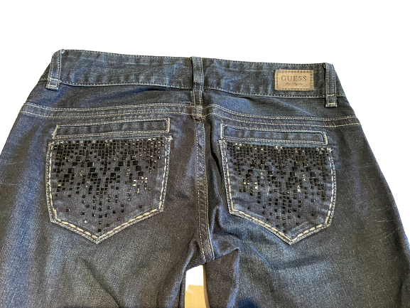 Discover GUESS' boldest denim with the Daredevil Boot Cut Bejewelled Pockets. Showcasing boot cut jeans with bejewelled pockets, you'll shine wherever you go for casual or dressy occasions. Make a strong statement and stand out from the crowd with this daring fashion choice. Dare to be different with GUESS.