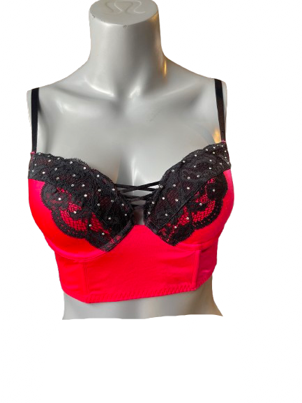 Sparkle and seduce with this secondhand 🔥 La Senza Red Rhinestone Bustier! Adorned with dazzling rhinestones and delicate lace, this bold bustier is perfect for the risk-taker who loves to turn heads. Dare to be different and make a statement in this 🔥 bustier.