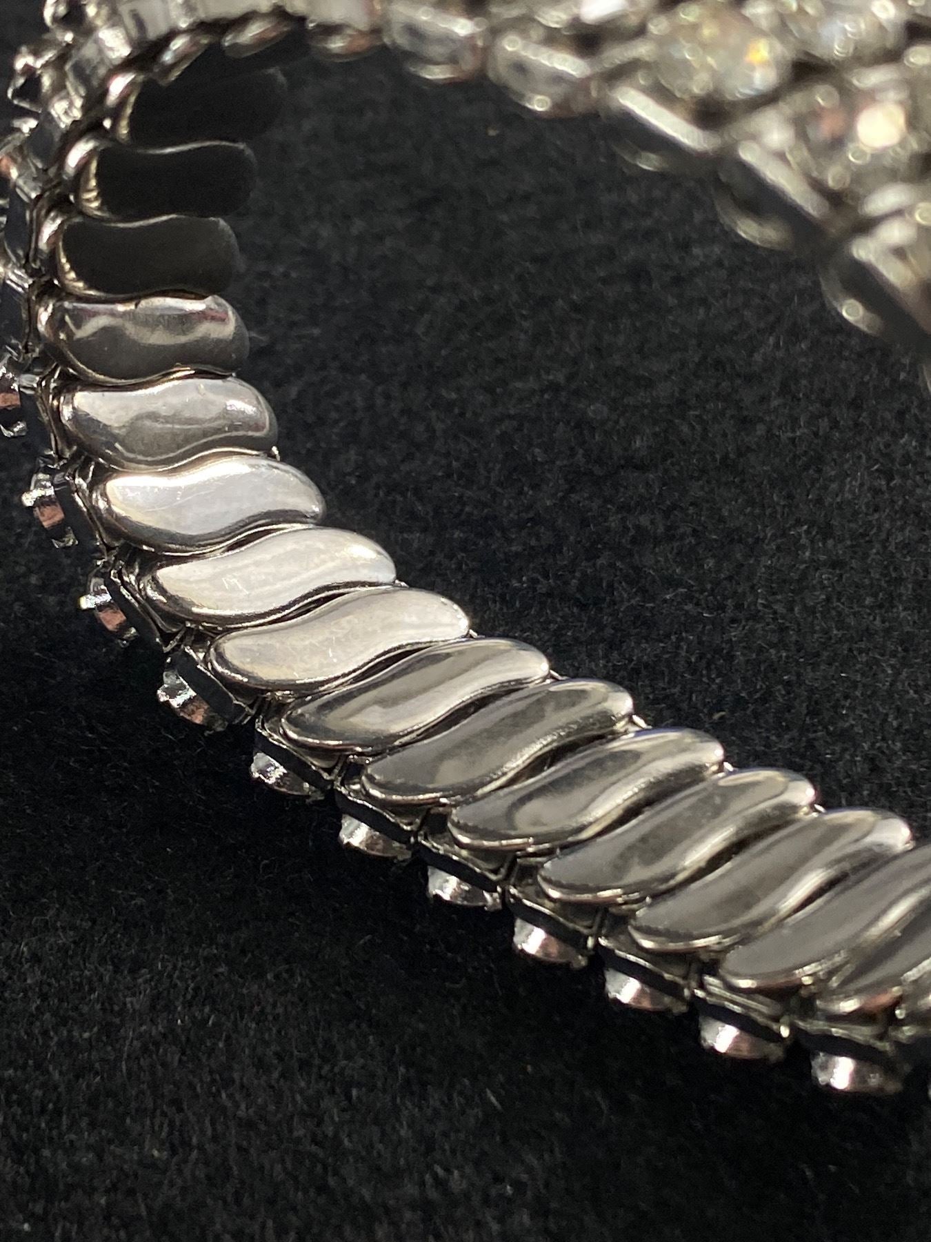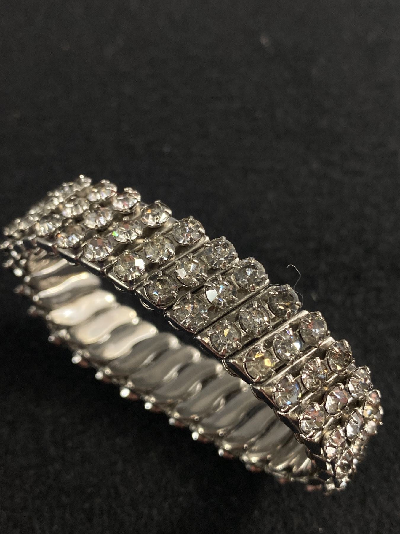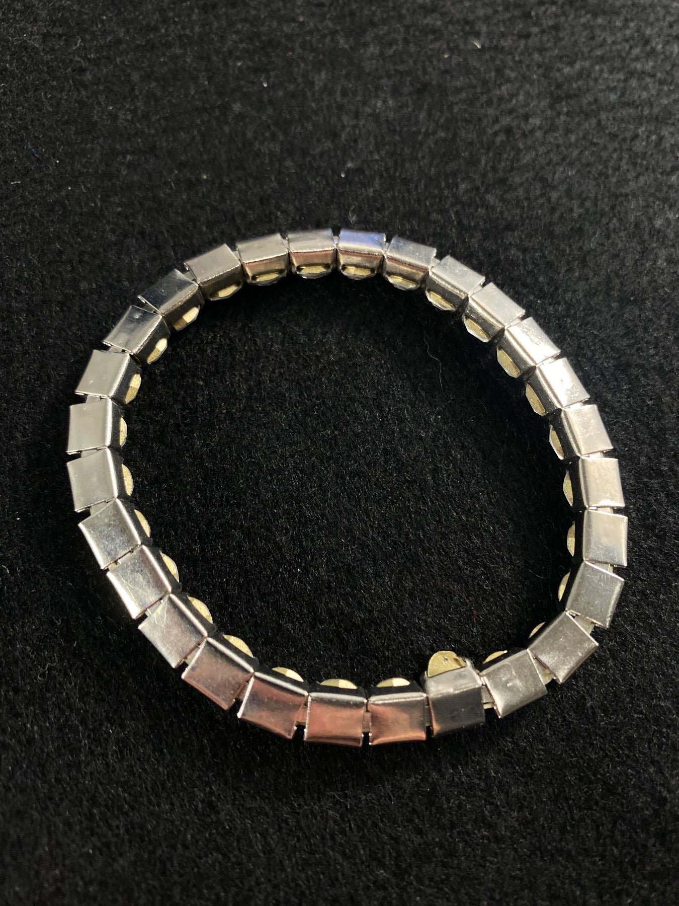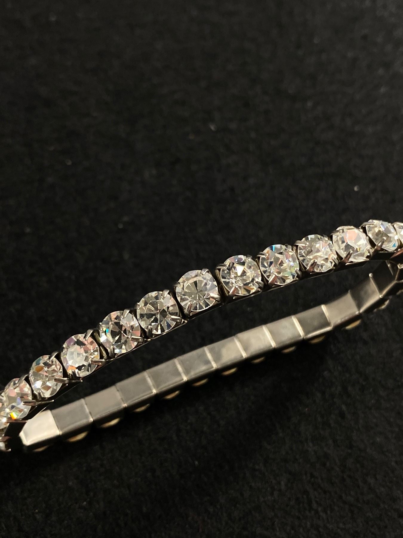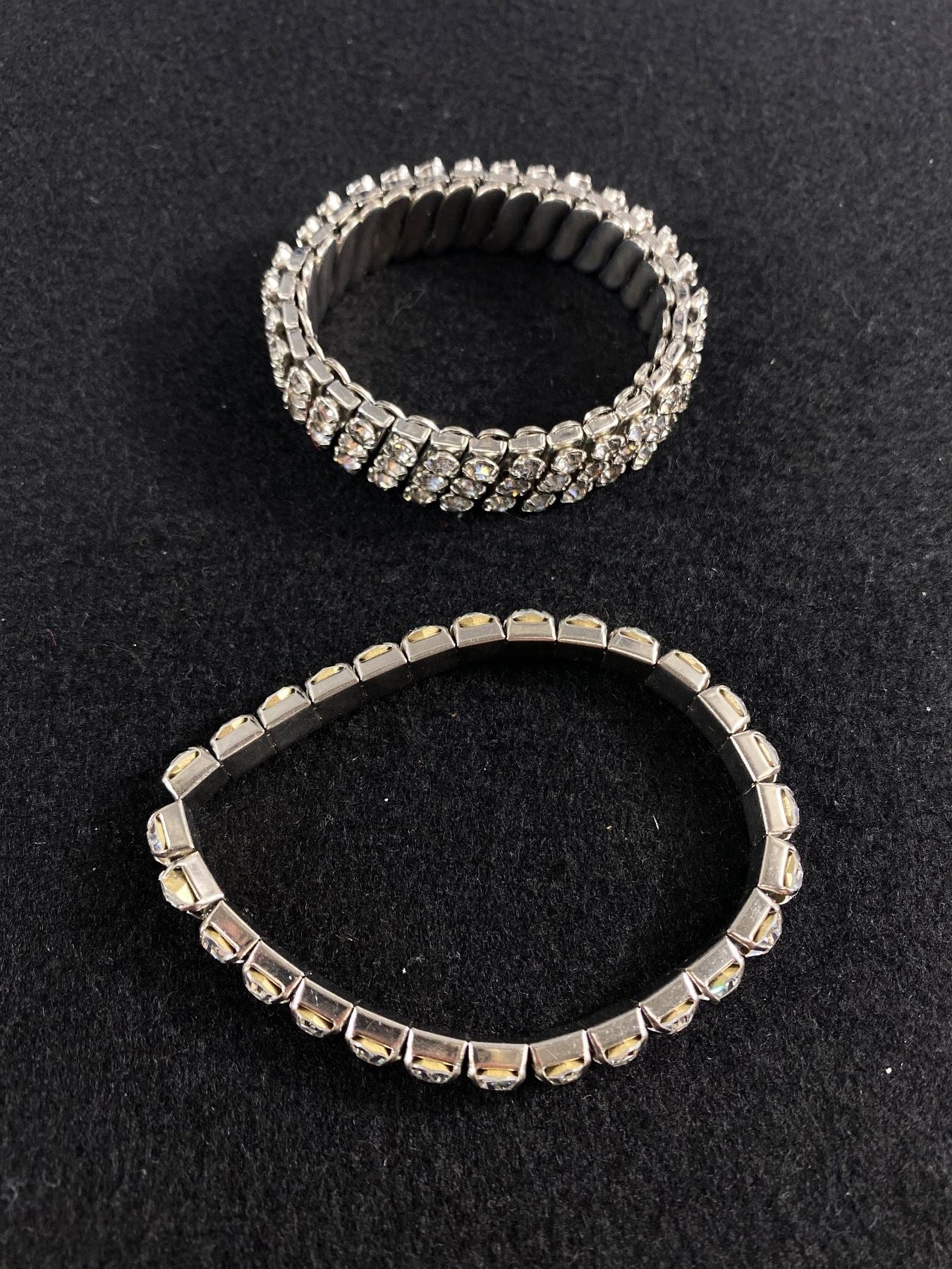 Elevate your style with these exquisite Silvertone Rhinestone Bracelets. Adorned with dazzling rhinestones, they add a touch of sparkle and shine to any outfit. Perfect for any occasion, these bracelets are sure to make a statement and add a touch of luxury to your look.