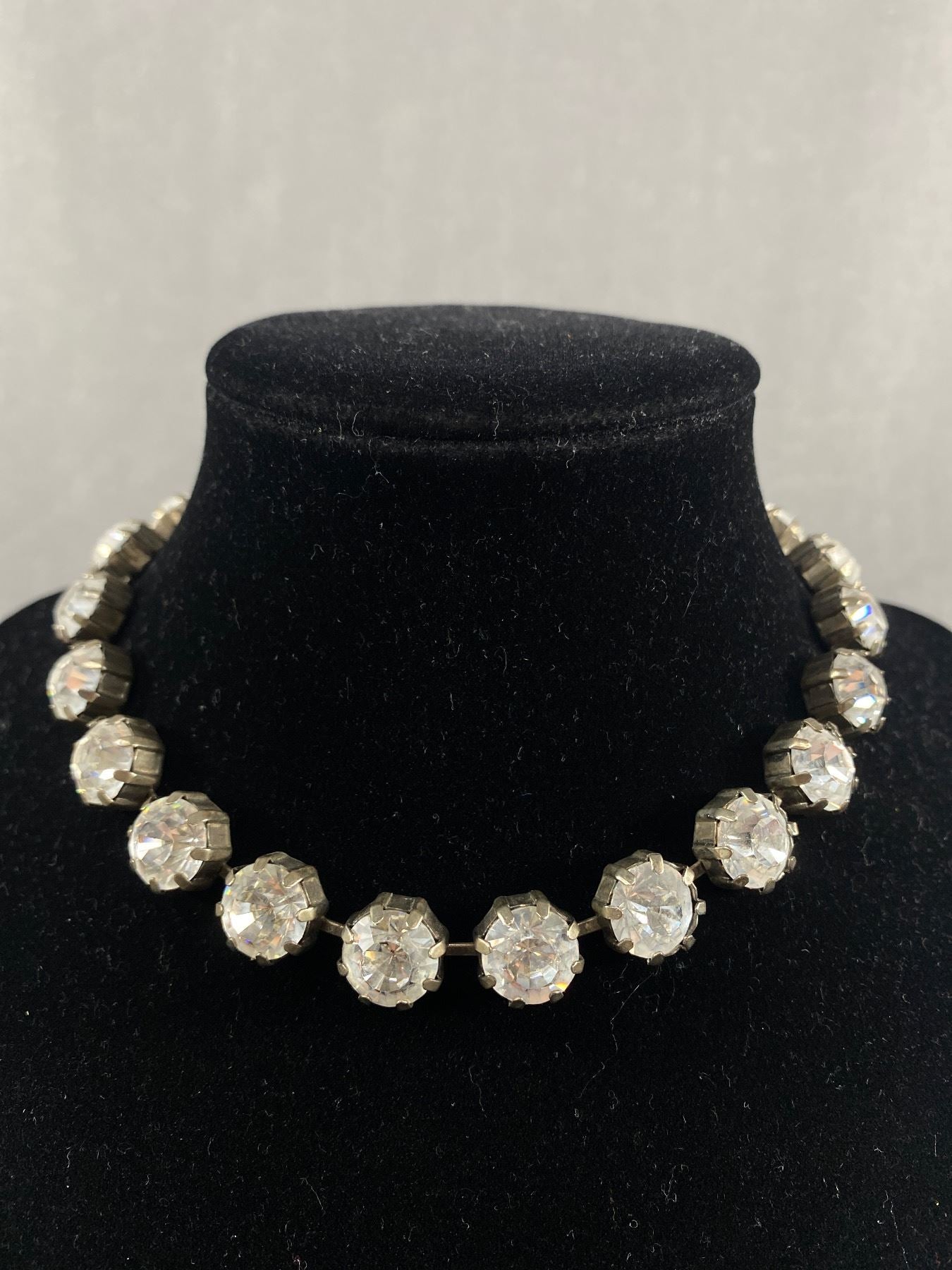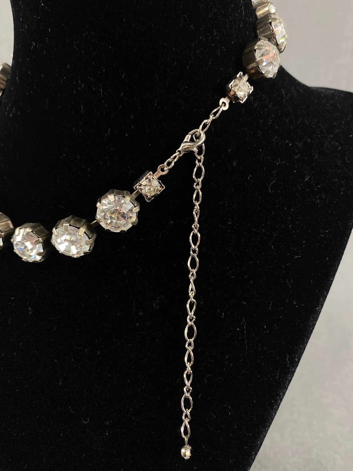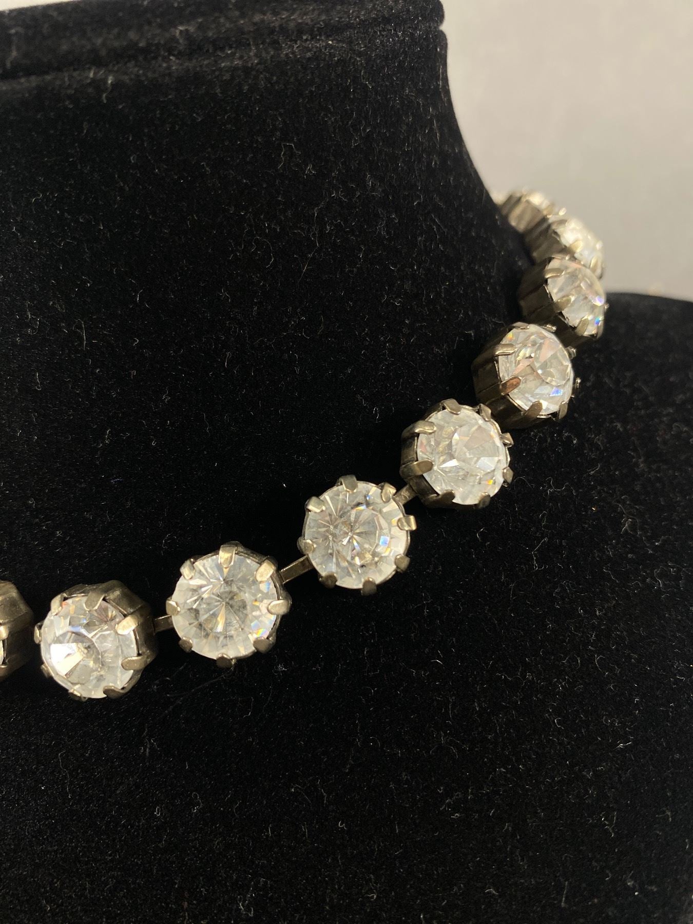 • Silvertone & Prong Set Rhinestone Choker Necklace