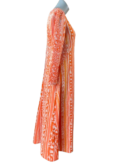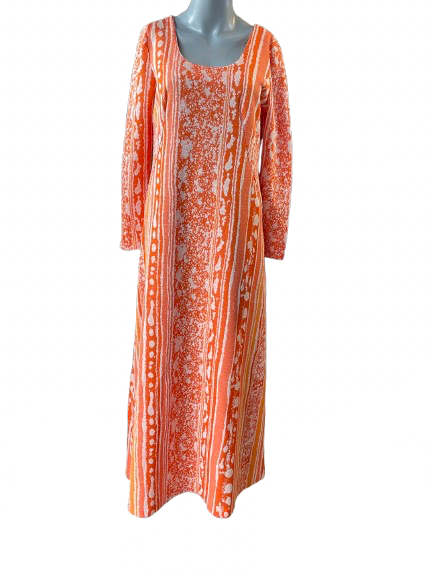 This hand made Long Orange Stretch Linen Dress is a one-of-a-kind caftan style piece that is sure to make you stand out. Its stretchy fabric provides a comfortable fit, making it perfect for all-day wear. Get ready to turn heads and make a statement with this unique dress! πβ¨