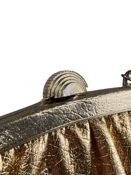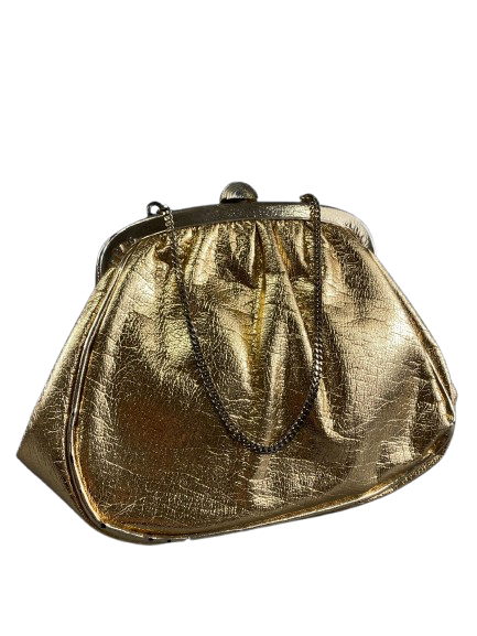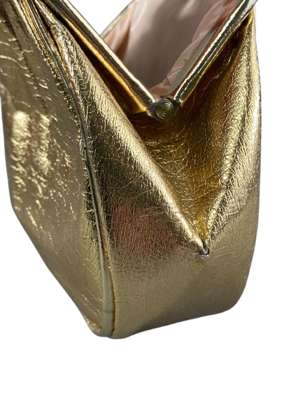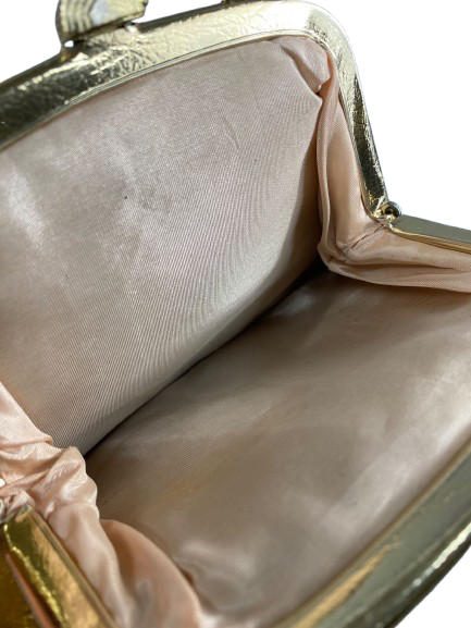 This one-of-a-kind vintage evening bag from the 1960's is a rare and valuable find. Its metallic gold colour adds a touch of elegance to any outfit, making it a must-have accessory for any fashion enthusiast. Own a piece of history and add a unique touch to your wardrobe with this vintage treasure.