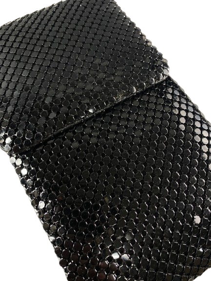 Indulge in luxury with this Vintage 1990's Black Slinky Mesh Crossbody Wallet. This piece features a timeless design, crafted with premium vintage materials. Effortlessly elevate your style with this exclusive accessory. Perfect for the sophisticated and fashion-forward individual.