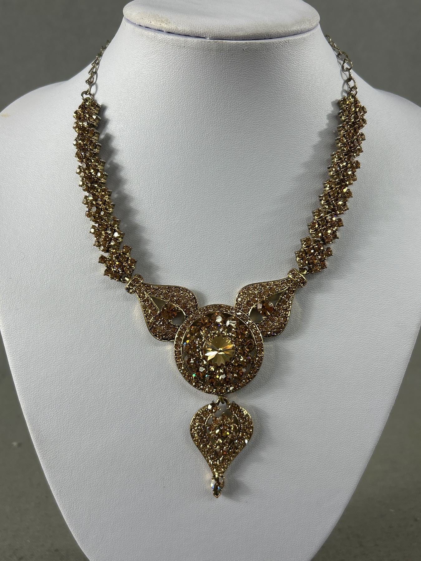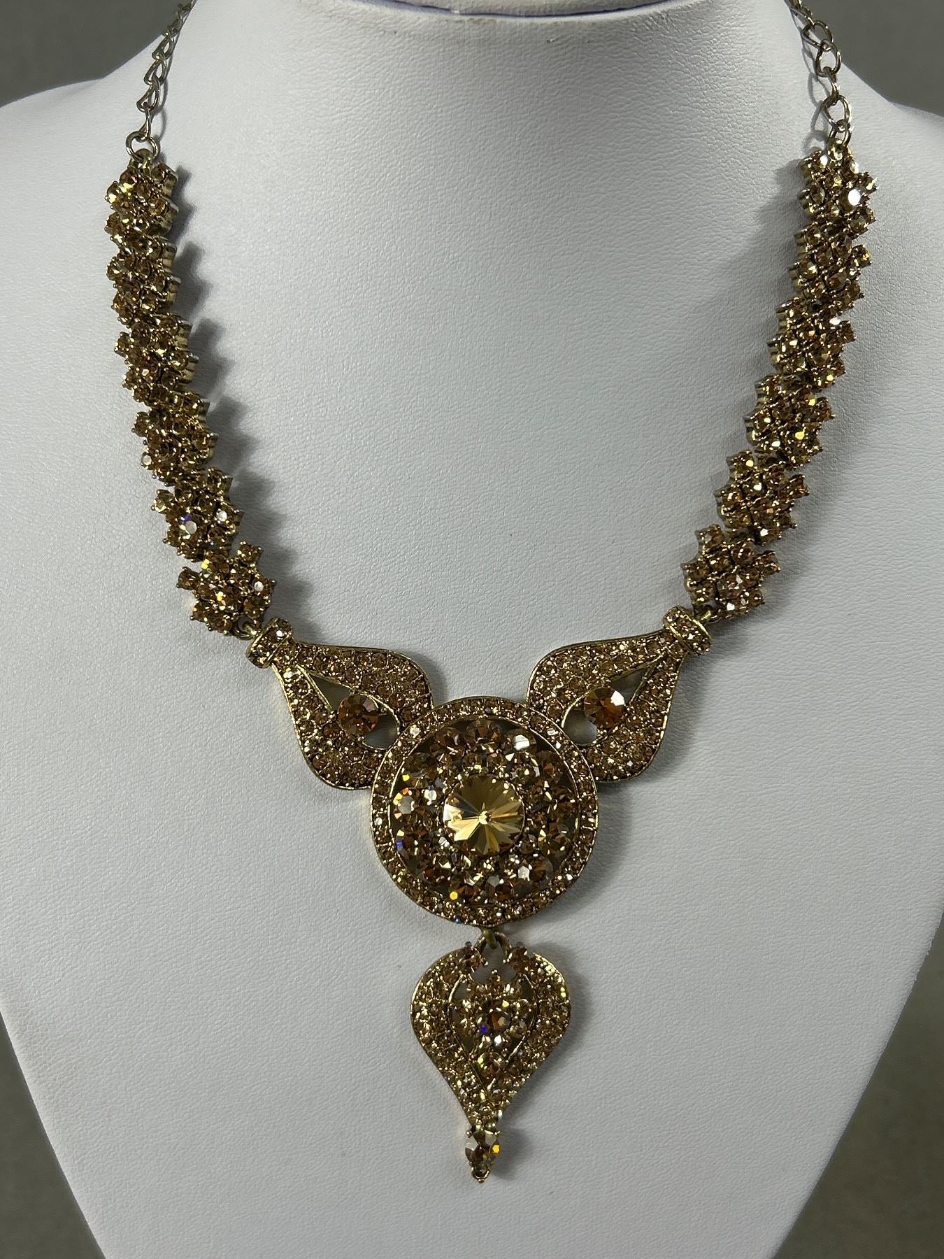 • Vintage Rhinestone Earrings Necklace Set