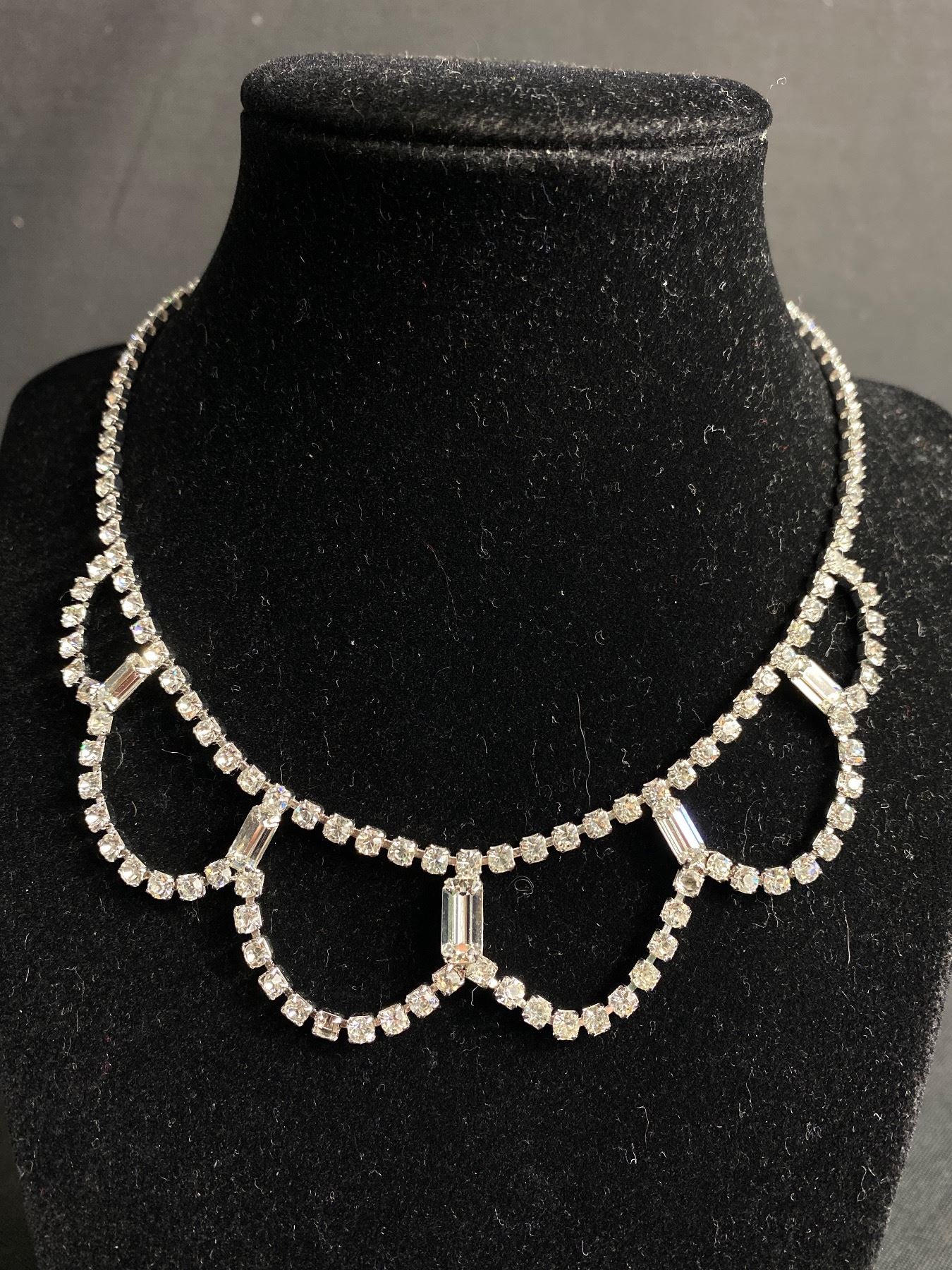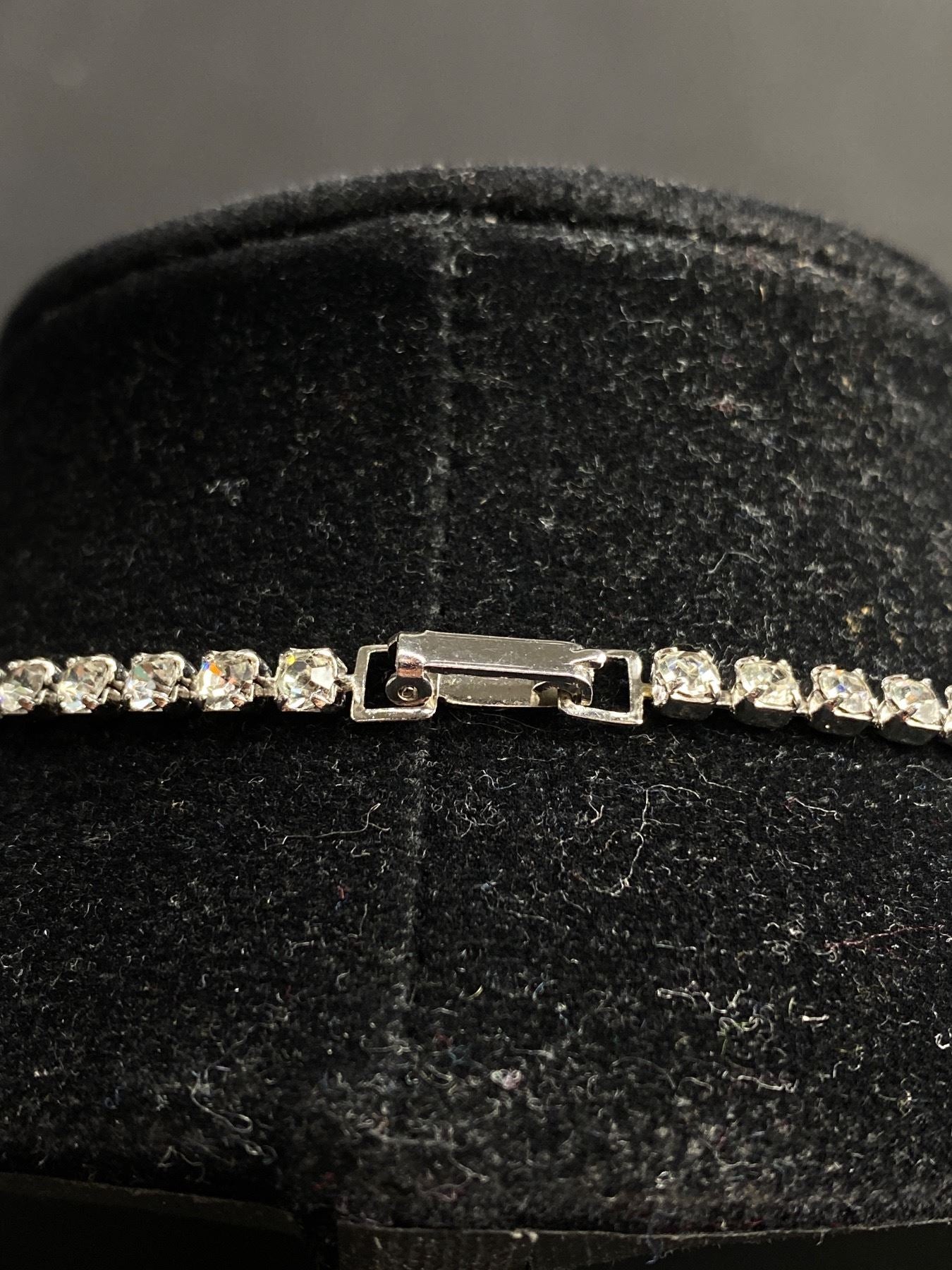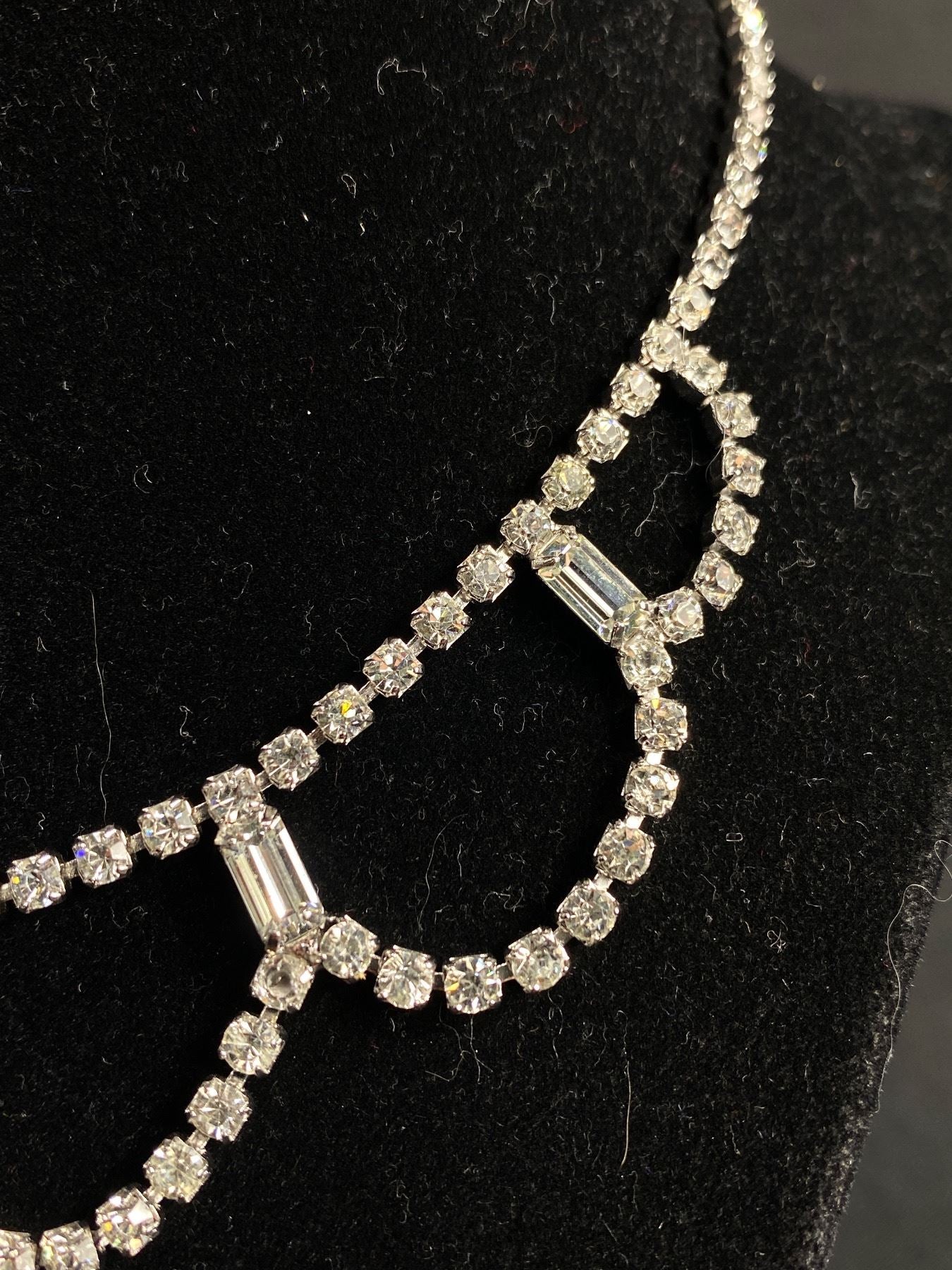 Indulge in luxury with this Vintage Very Fine Rhinestone Necklace & Bracelet. This elegant set exudes sophistication and fine craftsmanship, making it the perfect addition to any outfit. The sparkling rhinestones add a touch of glamour and elevate any look. Own a piece of vintage history with this exclusive set. π