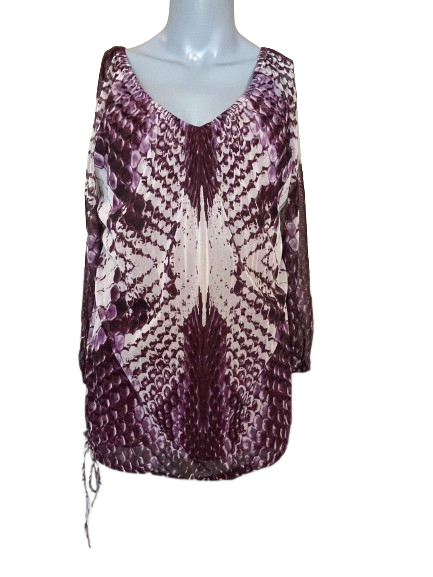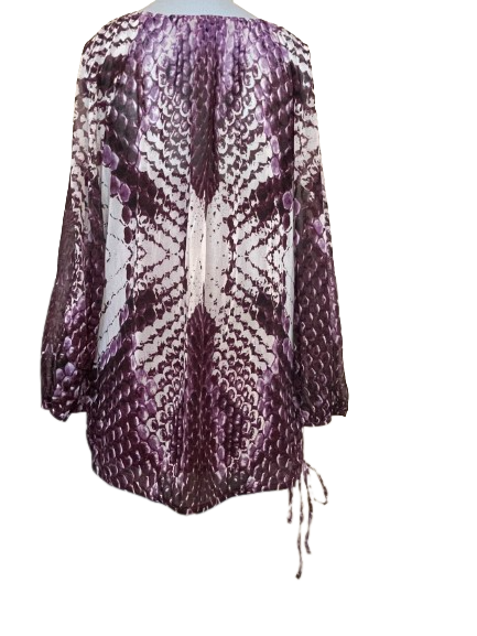 This INC Purple Sheer Blouse With Camisole will make an exquisite addition to your wardrobe. The sheer fabric is delicately decorated with an elegant design, providing a touch of sophistication to your look. Make a statement of class and distinction in this stunning piece.