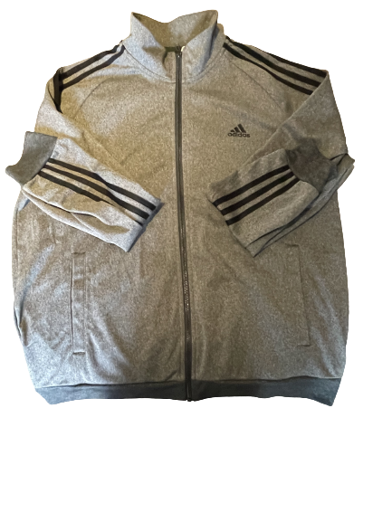 This Adidas Grey Track Jacket is designed for active wear, ensuring maximum comfort and quality. Featuring fabric and stitching crafted for durability, it's a wardrobe must-have for any active lifestyle.
