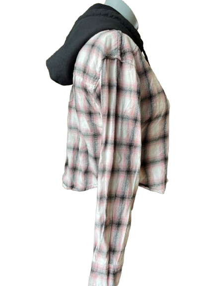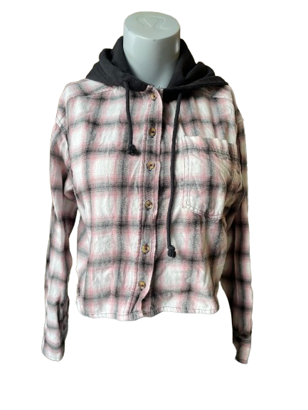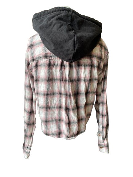 Get cozy and stylish with this secondhand Aeropostale Pink Plaid Cropped Button-Down Hoodie! 🌸 Featuring a hooded shacket design, this trendy top is perfect for lounging or running errands. Stay warm and on-trend with this must-have addition to your wardrobe! #comfyandcute 💕