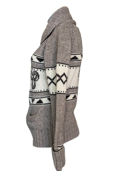This luxurious Aritzia TNA lambswool zip-up sweater jacket features an aztec print and is crafted from the finest quality of wool to create a stylishly warm piece. It's exclusive design is sure to make a statement while providing cozy comfort. 🧥 🧣 💃🏼