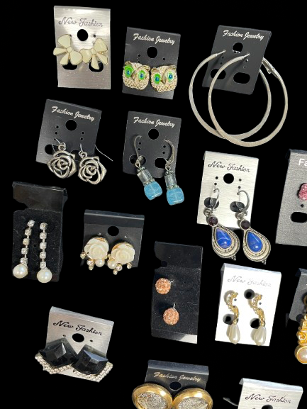 Add instant flair to your accessory drawer with this large bundle of 30 pairs of earrings for pierced ears — including hoops, studs, dangles, and drops — plus one matching floral necklace and earring set! These pieces feature everything from rhinestones and faux pearls to colourful charms and metallics. Whether you're looking to experiment with new styles, gift a friend, or stock up affordably, this set offers a great mix of trendy and vintage-inspired designs.