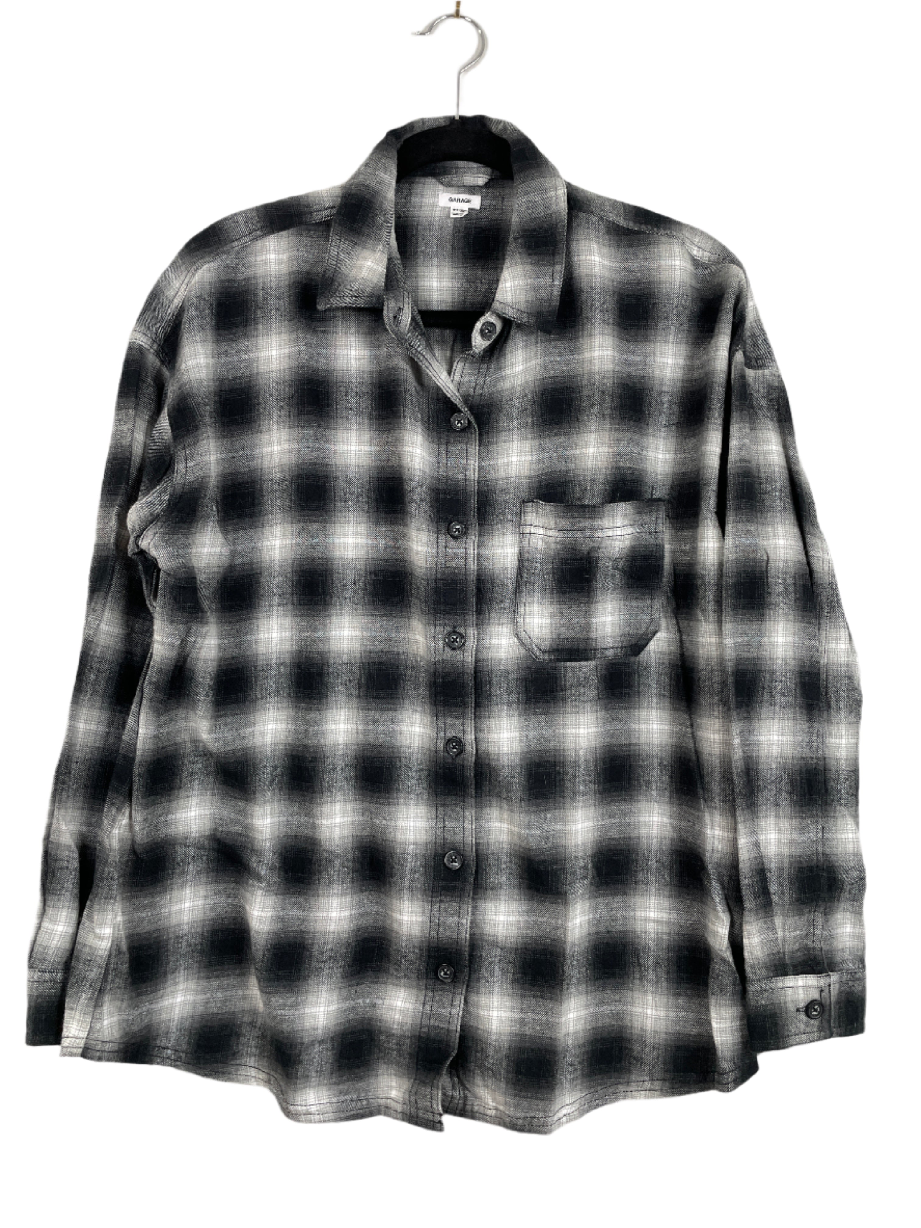 Classic meets cozy in this Garage plaid button-down shirt in a versatile black and white check pattern. Made from 100% cotton, it's soft, breathable, and perfect for layering year-round.